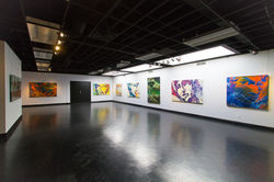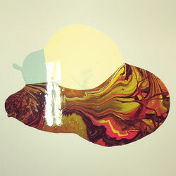 Painted in a semi-abstract fashion, these paintings are created through a process of throwing, dripping and pouring paint, I don’t actually use a paintbrush when creating them. My hands and gravity are my tools. I submerge my hands in paint, letting the paint fall freely and naturally from my hands, throwing and guiding the stream of paint, letting it drip from my fingers onto the canvas creating it’s own unique and organic forms and patterns. I pour puddles of paint onto the canvas and manipulate the path and flow by tilting the canvas in all directions. Each painting is well thought out and planned before hand, from the imagery to the colours, foregrounds and backgrounds. Experience has taught me a lot on how to mix my paint and colours in a way to achieve the look I want but of course there are always surprises and blips along the way. Creating paintings like this is actually a long slow process, I’ll spend almost an entire day going back and forth monitoring and adjusting the paint, observing and manipulating the flow while letting gravity run its course. It’s not uncommon for me to spend a good 15-20 minutes looking over a single puddle of paint, closely observing it’s current and course. I’m always excited to pour new paint, waiting to see what fate has in store. So for me there’s a certain natural element to this type of painting that always keeps it fresh and interesting.